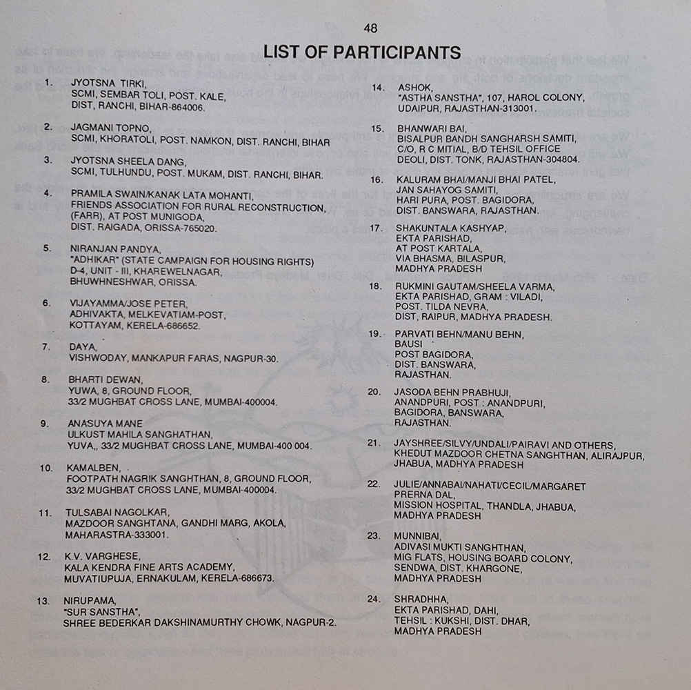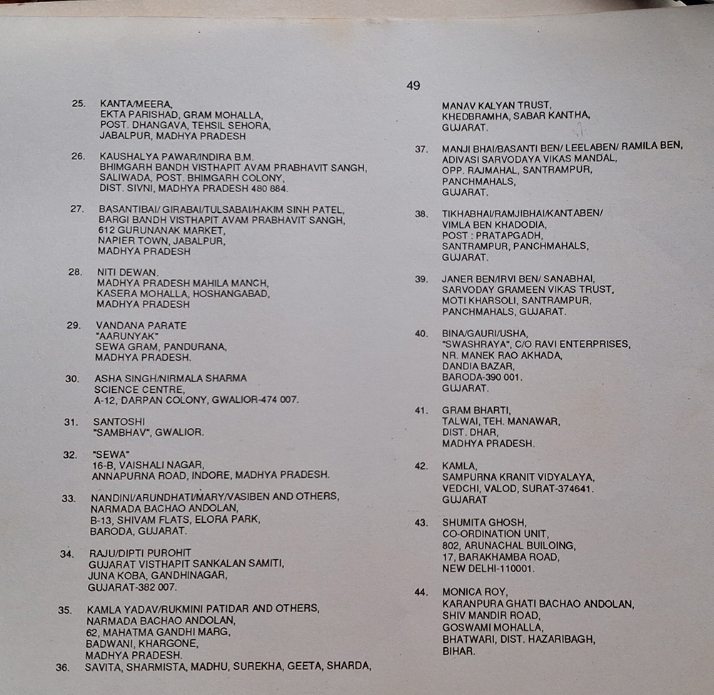 I do hope that this documentation now online, 30 years after having been published will remain an important record for people’s struggles against forced evictions and women’s movements, as well as their contribution in the larger debate around development in India that continues even now.