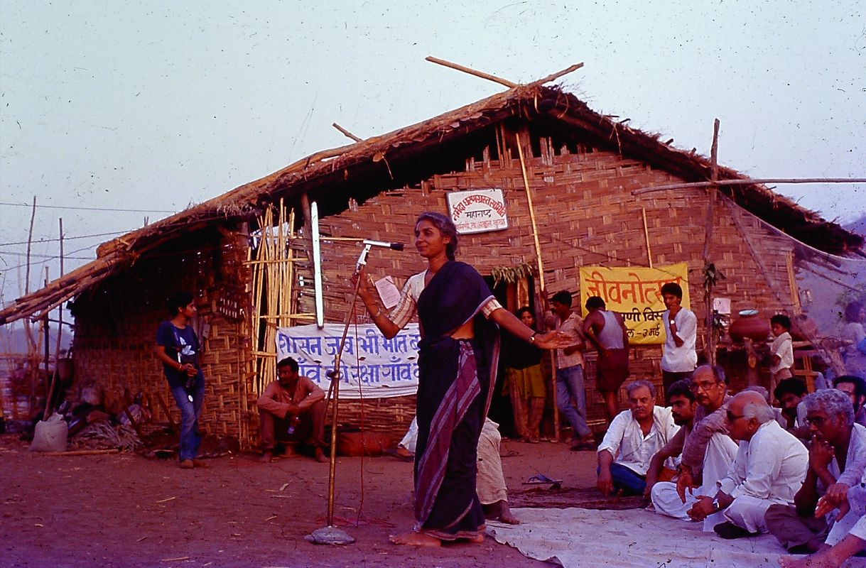 The meeting was convened by an Adivasi leader, Kevalsing. Most of the speakers were unschooled Adivasis. Medha Patkar was seated among the audience. The entire responsibility of conducting the meeting—including announcing who would speak next—was handled by the Adivasi convenor in the Bhilali dialect. Bhilali is a blend of Hindi, Marathi, and Gujarati, with a remarkable sweetness to it.